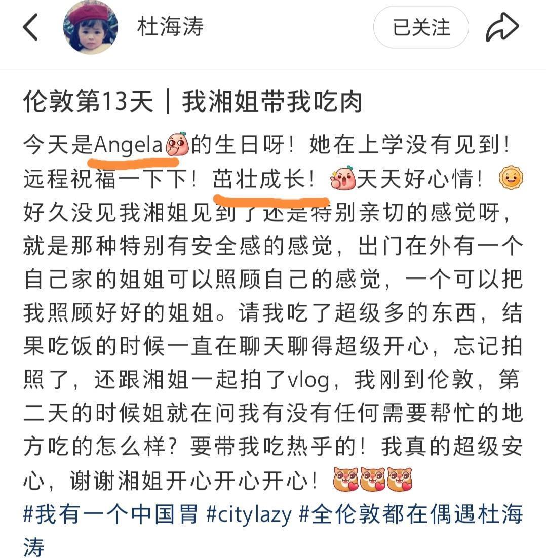 今天(10日),是他在伦敦上学的天。他在社交账号上分享了与李湘聚会的动态。不过,他一开始先是给王诗龄送生日祝福,接着说和李湘见面的感受,觉得特别亲切,特别有安全感,一个劲儿地夸李湘是一个好姐姐,请他吃了超多好吃的东西,还聊得很愉快,并且一起拍了一个vlog。他还提到一个细节:刚到伦敦第二天,李湘就很关心他,问他吃得怎么样?需不需要帮忙?从这一点来看,李湘真是为人仗义、大方。