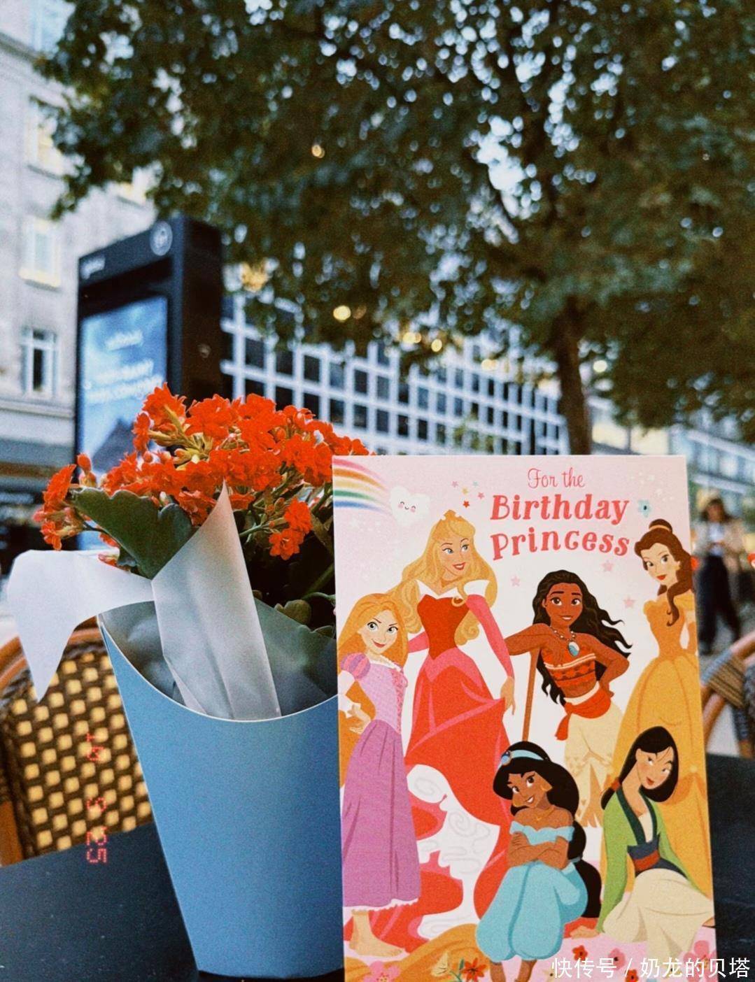 有意思的是,他上传了一组照片,有两张是送给王诗龄的礼物——一束漂亮的花,以及一张卡片,上面的英文名是对的。所以,不知道他为什么在写文案的时候会写错呢?这说明检查很重要啊。